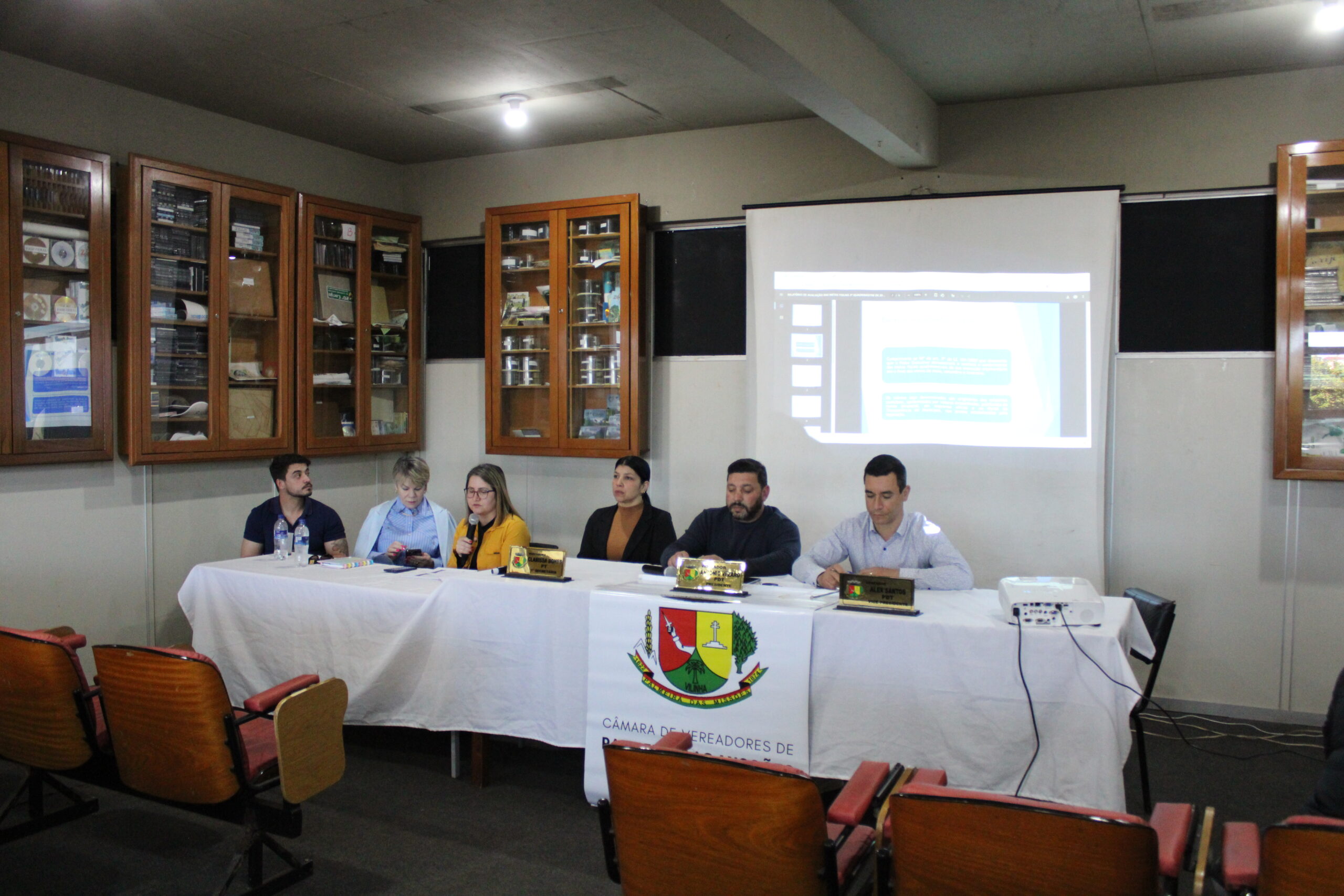A reunião foi conduzida pelo presidente do Legislativo, Antonio Vezaro, e contou com a presença da contadora do município, Cidiane Ribeiro, responsável pela exposição dos dados. Participaram também os vereadores Alex Santos, Clarissa Bones, Mateus Luan e Rosângela Gehllar.