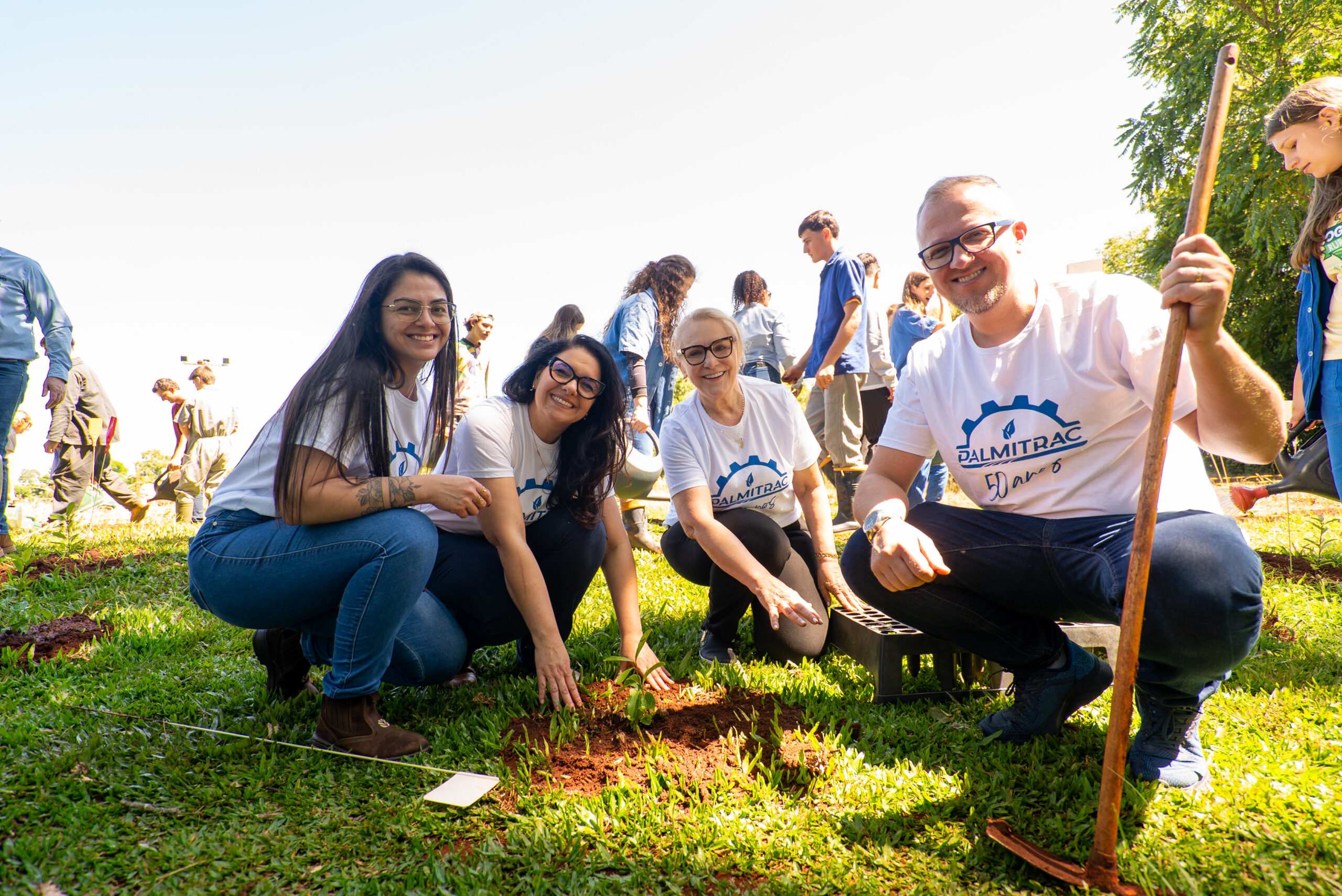 As mudas plantadas na escola crescerão como símbolos vivos dos 50 anos da Palmitrac e da New Holland, representando raízes fortes que se conectam à história, à cultura e ao futuro de Palmeira das Missões.